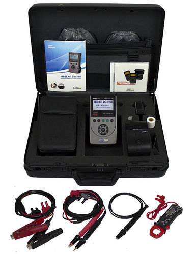 The IBEX-ULTRA enables fast and easy battery diagnostics according to IEEE, NERC and FERC industry standards and offers a very fast (3 second) simultaneous measurement of ohmic values, voltage and temperature, while the Exmons Battery Management Software allows battery trending, report creation, graph viewing and Excel exporting. This device represents a time saving and cost-effective solution for any preventative maintenance program, ensuring the integrity of critical back-up batteries. The full package includes a body with printable means, Li-Ion battery, soft poly-vinyl bag with ZERO adjustable plate, standard charger unit (100 to 240 VAC), 4-pin type, clip and temperature probes, user manual in English, Serial Comm software bundle and an USB cable for PC connection.