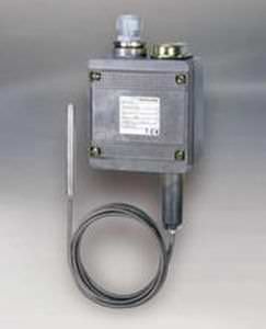 The T2H with remote sensor measures temperature ranging from -45 °C...+66 °C to +160°C...+316 °C and can be used in industry, shipbuilding and railcars. It is approved by the ATEX Ex IA, UL, and CSA. Its mechanical temperature switches with capillary for temperature control and has 2 switching contacts. It can be operated using manual reset.