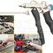 Sturdy aluminium housing with air supply at tool head or handle, pressure regulator and exchangeable nozzles