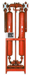 The compressed air is passed through a pressure vessel with two "towers" filled with a desiccant material. This desiccant material attracts the water from the compressed air via adsorbtion. As the water clings to the desiccant, the desiccant "bed" becomes saturated. The dryer is timed to switch towers based on a standard NEMA cycle, once this cycle completes some compressed air from the system is used to "purge" the saturated desiccant bed by simply blowing the water that has adhered to the desiccant off.