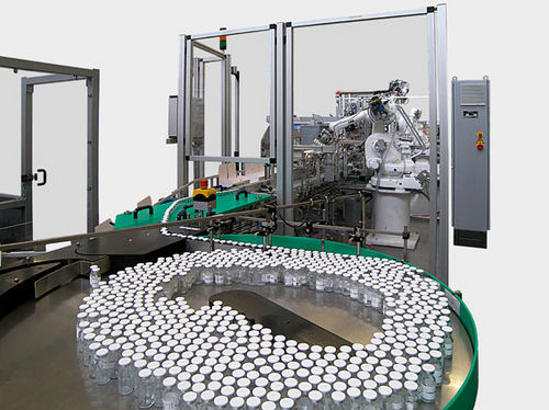 The DT1500 turn table is a high-quality, compact unit for transferring various-sized and cylindrical products from a feeder belt in a single line. Cylindrical products are delivered to the turn table by a feeder belt. The rotation of the table sends the cylindrical products to the edge of the table. From there, they are sent in a single line to the discharge belt. An adjustable guide on one side guarantees the transport of different diameters.