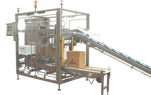 After filling, the case is moved from the loading station and replaced by an empty case. By use of a pressure plate, the products can be compressed again for a safe closure of the case.