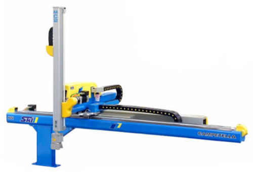 Robot series devoted to that market sector needing simple pick and place operations of the moulded piece. Realised through mechanics CO type, (extraction X axis fixed on the Z axis trolley), and MC (extraction X axis mobile on the Z azis trolley) with Y axis single stroke, this new range of products has a simple and intuitive software allowing the complete axis management through free programming functions. Orderly deposit, palletizing and externalmachinery management are among the main activities of this robot. Innovative mechanics and high quality elements grant this model the well known accuracy and reliability Campetella products.